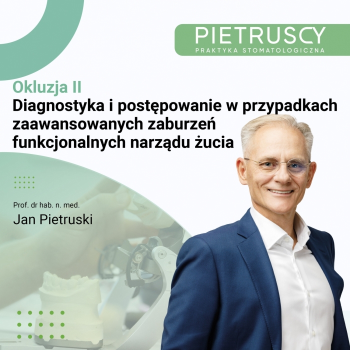 WARUNKIEM uczestniczenia w kursie jest wcześniejsze uczestnictwo w regularnym kursie OKLUZJI najlepiej u Prof. Pietruskiego lub innym regularnym stacjonarnym ( co najmniej dwudniowym) kursie z tej tematyki. To bardzo ważne – przyjazd na ten kurs bez podstawowej znajomości zasad funkcji narządu żucia opartej na fizjologii stawów skroniowo-żuchwowych jest stratą czasu.